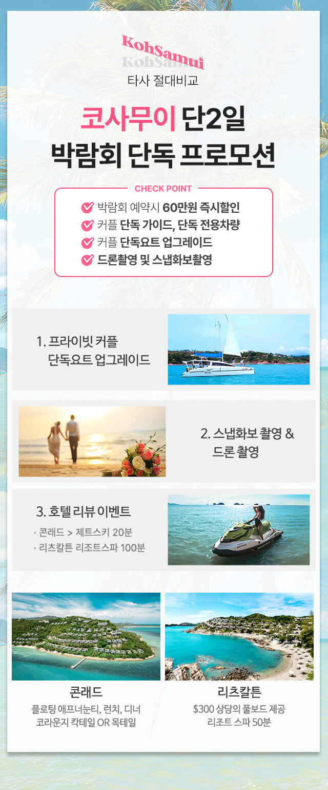 결혼 준비의 마지막 퍼즐, 신혼여행은 팜투어에서 완성해 보세요.